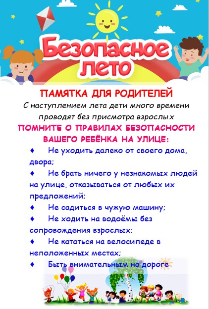 Во время летних каникул безопасность детей выходит на первый план. Очень важно всем родителям постоянно напоминать своим детям о правилах безопасности, как дома, так и на улице!