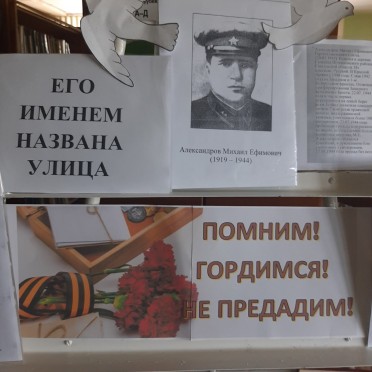В Страдечской сельской библиотеке ко Дню освобождения Брестского района от немецко-фашистских захватчиков организована выставка «Его именем названа улица» о герое Советского Союза Александрове М.Е., который погиб при освобождении деревни.