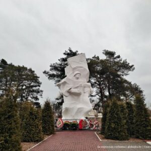 Скульптором данного памятника является Ю. Рычков, архитектором – Ю. Тихонов. Изготовлен памятник из бетона с мраморной крошкой. Высота постамента 1 метр, скульптуры – 8,6 метров.