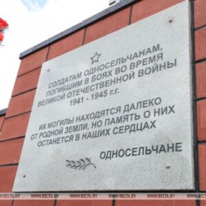 Их могилы находятся далеко от родной земли, но память о них останется в наших сердцах. Односельчане. К постаменту памятника прикреплены плиты с именами 68 сельчан. Центральным элементом композиции является штык, направленный в небо. Эскиз памятника разработан брестским художником Павлом Герасименко и был одобрен на собрании.